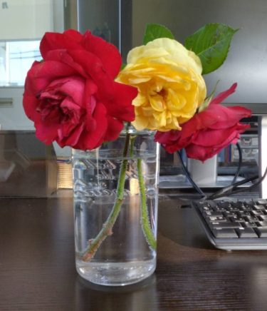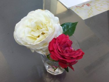 お客様から、お庭に咲いていたバラのお花いただきました!事務所でバラの香り楽しんでいます。ありがとうございました(^^♪