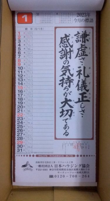 弊社カレンダーは毎月の標語入り、会長のこだわりです。